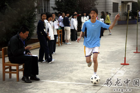 一位男生在足球帶球繞桿跑的考試中,發(fā)揮失常,僅得了7分,難過得流下眼淚。因為按他平時的情況,拿滿分不是問題。