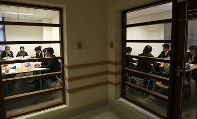 昨天中午,早報記者跟隨其中一個小組進入面試現(xiàn)場。面試室有3位考官,2位是復旦老師,1位是資深企業(yè)校友。參加面試的6位考生針對案例進行20分鐘的討論,然后每個人再用英文總結。