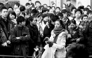 早上7點(diǎn)半,電影學(xué)院院內(nèi)已是人聲鼎沸,前來趕考的學(xué)生在各自報(bào)考的院系樓前排隊(duì)等著叫號(hào)進(jìn)考場(chǎng)。在備受矚目的報(bào)考大熱門表演系樓前,1000多名來自全國各地的學(xué)生和龐大的“家長助考團(tuán)”擠滿空?qǐng)觥?/p>