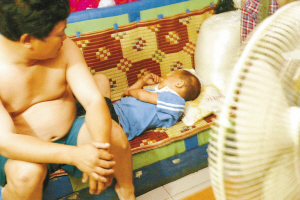 16歲的大女兒也已起床。對(duì)大女兒,陳彩霞很放心,因?yàn)樗?tīng)話、懂事,而且已經(jīng)能為家里掙錢(qián)了。讓她揪心的是9歲的兒子淘淘。和名字一樣,兒子淘氣得讓她有時(shí)候覺(jué)得很窩火。這時(shí)候,淘淘還蜷在沙發(fā)上睡覺(jué),那是他的床。
