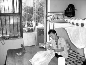 “我們在這里生活無憂,而且每天都還有志愿者和社會各界人士來探望!币覀ケ晦D(zhuǎn)移到成都中醫(yī)藥大學(xué)下汪家拐校區(qū),和小尹同安置在該校區(qū)的還有他學(xué)校的70多名高三同學(xué)。他住在一幢6層的宿舍樓,宿舍內(nèi)窗明幾凈,地面整潔,床鋪全是新的,枕頭也是新的,甚至?xí)疽彩切碌。“全是政府配置的,書本則是志愿者送的”。小尹坐在床邊的桌子旁,復(fù)習(xí)著功課。小尹說,在這里他不僅感受到了溫暖,更可以安靜迎考,他一定要考好,否則對不起幫助他們的人。