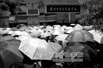 在育才實(shí)驗(yàn)學(xué)校門口,從佛山開車過來的李女士告訴記者,他們一個早上跑了3個地方才找到考場,“一開始以為是育才中學(xué),跑到那邊才知道弄錯了,后來又跑去了附近的第109中,第三次才找到這里。”