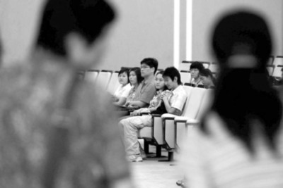 昨天9時(shí)40分,第一批考生每6人分成三組,帶入三個(gè)面試室。考生先要求作一個(gè)簡(jiǎn)短的自我介紹,隨后兩名面試考官提出一個(gè)話題,讓考生進(jìn)行小組討論。