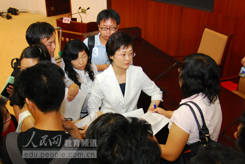 各路記者把新任教育部發(fā)言人團團圍住