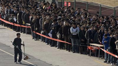 這場(chǎng)“中高級(jí)人才招聘會(huì)”要求應(yīng)聘者必須有本科以上學(xué)歷、中級(jí)以上職稱,或者有特殊才能,但剛開門就有成千上萬的人擠進(jìn)來。