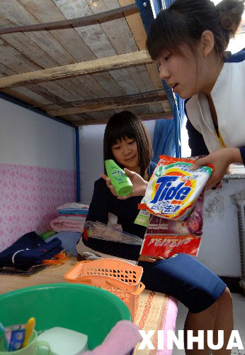 為迎接這些災(zāi)區(qū)學生的到來,石家莊外語翻譯職業(yè)學院專門成立了“迎接四川災(zāi)區(qū)同學”籌備組,投入10多萬元為他們做好食宿安排,采購了被褥、蚊帳、睡衣、洗漱用品等日常生活用品,并且準備了專項資金,每月將為每個學生發(fā)放500元生活補助。