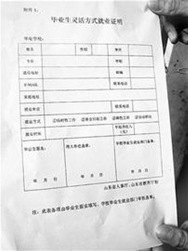該校機(jī)械工程系一名學(xué)生告訴記者:“我們明年7月才畢業(yè),這兩天班主任給我們每人發(fā)放了一張‘畢業(yè)生靈活方式就業(yè)證明’,讓我們自己到校外聯(lián)系單位,并讓用人單位在這張證明上蓋章。班主任老師說了,交不上這份就業(yè)證明,學(xué)校就不給畢業(yè)證。我們現(xiàn)在很為難,因?yàn)橛萌藛挝坏墓虏皇请S便就給蓋的!
