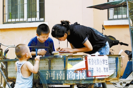 李靈隨手從三輪車上一個紙袋里掏出一個筆記本,寫下了朱敘龍小朋友所住的樓號和房間號碼。
