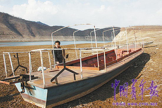而這段時(shí)間,正值春季的枯水期,水位要從半山腰回落30多米,大多數(shù)地方的江底都裸露出來,隨處可見干枯的水草和龜裂的泥灘,那艘鐵皮船也趴在一處岸邊,動(dòng)彈不得。
