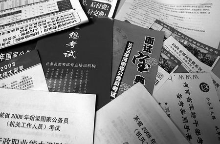已經(jīng)在某企業(yè)單位工作一年的黃中(化名)則是考公務(wù)員大軍中的一員,他報(bào)考了今年河南省直機(jī)關(guān)公務(wù)員。為了“提高”自己,需要到社會(huì)上的培訓(xùn)班“補(bǔ)補(bǔ)課”。他報(bào)了一個(gè)考前輔導(dǎo)班,花費(fèi)了1100多元。據(jù)說(shuō),還有沖刺班、面試班、保過(guò)班等各種名目,如果再參加,還需要花費(fèi)數(shù)千元!皡⒓舆@樣的考前輔導(dǎo)班是否有用?”面對(duì)記者的詢問(wèn),黃中一臉漠然,“錢是花了,但心里面沒(méi)有底!