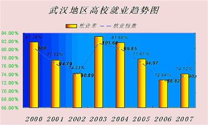 昨日,武漢市大中專畢業(yè)生就業(yè)管理辦公室發(fā)布“2007年度武漢地區(qū)大學(xué)畢業(yè)生就業(yè)率指數(shù)報(bào)告”,稱去年武漢市大學(xué)畢業(yè)生就業(yè)率達(dá)到74.12%,比上年高出1.48%,自2004年以來首次出現(xiàn)回升。