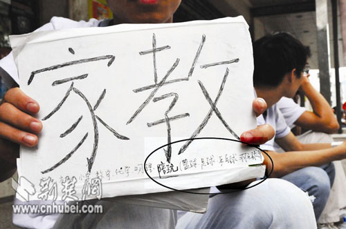 圖為:打出的家教招牌。 記者劉蔚丹 實(shí)習(xí)生榮佳穎攝