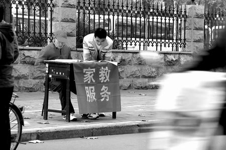 “暑假前半個(gè)月,招工廣告就遍布校園。南方的加工企業(yè)和保安公司的居多,所以,想暑假掙些錢(qián)又不想呆在學(xué)校的同學(xué)報(bào)名踴躍。而不想離開(kāi)學(xué)校的同學(xué)有的做家教,還有一些有經(jīng)驗(yàn)的高年級(jí)學(xué)生辦起了暑假輔導(dǎo)班,用自己大學(xué)生的知識(shí)優(yōu)勢(shì)輔導(dǎo)中小學(xué)生。但更多的同學(xué)是通過(guò)街頭小廣告或勞動(dòng)力資源市場(chǎng)尋找適合自己的工作崗位!膘杳系抡f(shuō),暑假期間,學(xué)校因?yàn)橛姓猩裙ぷ鳎矔?huì)提供一些打工崗位,但數(shù)量非常有限,大學(xué)生打工的整體情況很難把握。