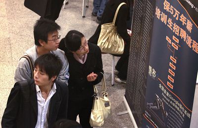 市人才服務中心的信息顯示,同樣受經(jīng)濟形勢影響,今年招聘會前來應聘的人比往年多,但招聘的有效崗位相對減少。人才市場上,時常可見08屆應屆畢業(yè)生的身影。而本科畢業(yè)生的畢業(yè)起薪愿望大多降至2000元/月。
