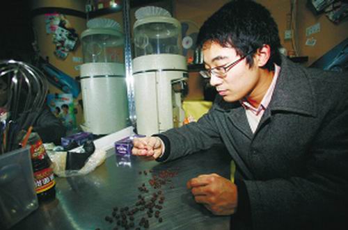經(jīng)過1年多的調(diào)查準備,年初,4個人投資了近10萬元,在西南政法大學校園里開起了自己的第一個小店,取名叫“艾萊”(I LIKE),學校知道是學生創(chuàng)業(yè),還降低了租金。他們對于自己做的咖啡信心十足:“不比星巴克的咖啡差!