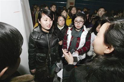 “身高1.6米以上,高中以上學(xué)歷,年齡要求30歲以下——”昨日,武漢市公交集團(tuán)招公交乘務(wù)員的展位被不少女大學(xué)生圍得水泄不通。據(jù)統(tǒng)計(jì),當(dāng)天共有300多人應(yīng)聘,本科、?啤⒅袑、高中等各種學(xué)歷都有,其中大專以上的占到了半成。