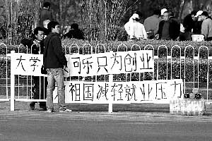 拉橫幅稱為祖國減輕就業(yè)壓力,有單位聯(lián)系欲聘為兼職