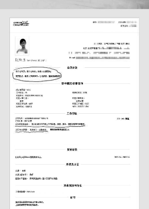 發(fā)帖者自稱是某公司的HR,天天都得從一大堆簡歷中挑到半夜,累個半死。不過這幾天她發(fā)現(xiàn)一些挺不著調(diào)、很搞笑簡歷,所以挑出幾個“個性的”供大家“觀賞”。發(fā)帖者還把這些簡歷上傳到網(wǎng)上,當然,照片里已經(jīng)遮掉了應聘者的姓名和聯(lián)系方式。