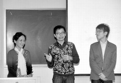 昨晚8時(shí)許,四川師范大學(xué)大學(xué)生心理健康教育服務(wù)中心和愛(ài)白成都青年同志活動(dòng)中心邀請(qǐng)吳幼堅(jiān)、鄭遠(yuǎn)濤及其男友來(lái)到校區(qū),為大學(xué)生聯(lián)手上了一堂同性戀話(huà)題的課。