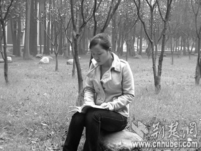 可在同學(xué)眼中,明文婷卻是個(gè)執(zhí)著的“傻”女孩。明文婷堅(jiān)持晨讀,無論冬夏,都是風(fēng)雨無阻。在寒冷的冬天,當(dāng)別的同學(xué)還沉睡在溫暖的被窩中時(shí),明文婷已裹著厚厚的羽絨服,縮著頸子在教學(xué)樓的走廊里一邊不停來回跺著腳,一邊捧著書大聲朗讀英語,這一幕曾讓不少路過的同學(xué)感到震動(dòng)。