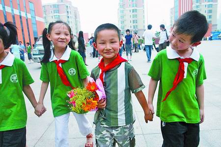 “好多家長(zhǎng)都想請(qǐng)災(zāi)區(qū)的孩子到家里做客!”六年級(jí)的婁娟老師說,家長(zhǎng)們給她打電話、發(fā)短信,希望能給他們機(jī)會(huì),讓孩子把來自災(zāi)區(qū)的新同學(xué)帶回家,給他們家的溫暖……