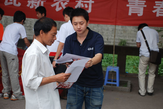 7月14日上午,適逢長沙鎮(zhèn)趕集,開縣團縣委聯(lián)合重慶工程職業(yè)技術學院大學生暑期三下鄉(xiāng)社會實踐團在長沙鎮(zhèn)開展改革開放三十年成就宣講服務活動。當日上午,三十名宣講成員冒著酷暑向過往群眾宣講,宣講活動按思想建設、國防科技、百年奧運、民主法制、社會民生等10個部分圖文資料生動地展現了祖國改革開放三十年取得的巨大成就。駐足觀看的群眾絡繹不絕,在展覽前打起了傭堂,他們有的深情凝望圖片資料,有的和大學生攀談改革開放三十年來自己生活的變遷。