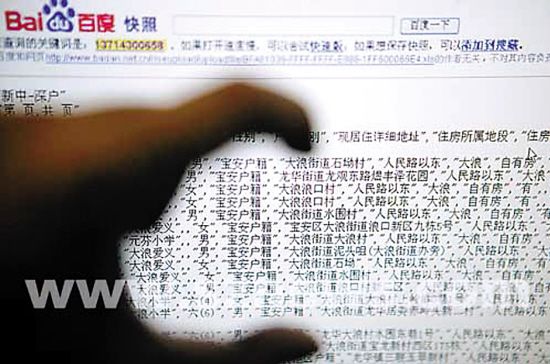 帶著滿腹疑問,沈女士某日晚間上網(wǎng)時(shí)嘗試用搜索引擎查找與自己手機(jī)號(hào)碼相關(guān)的信息。在“百度”上出現(xiàn)的搜索結(jié)果,其子小圳的姓名、學(xué)校、班別、性別、詳細(xì)住址與家長(zhǎng)聯(lián)系電話便一覽無余。再打開“鏈接”,一個(gè)名為“××中學(xué)2008年××××錄取名單”的表格便出現(xiàn)在網(wǎng)頁(yè)上,讓她吃驚的是,按照表格上的分類,除了之前所看到的信息外,甚至還有該學(xué)生是否屬于獨(dú)生子女、家中是否擁有房產(chǎn)等資料。