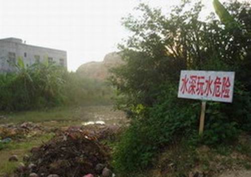 出事后,有關(guān)部門已在水塘周圍豎立了安全警示牌