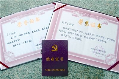 小吳的“優(yōu)秀畢業(yè)生”等證書(shū)
