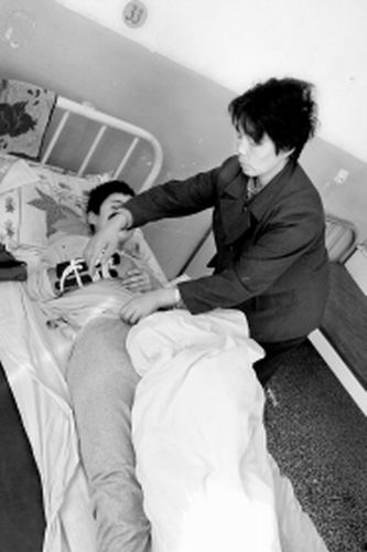 媽媽在照顧受傷的兒子 記者 陳澈 攝