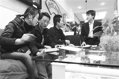 圖為4名大學生在店里召開“董事”會議,商討水族館的下一步發(fā)展計劃。文/記者 翁曉波 通訊員 王春生 圖/記者 李少文