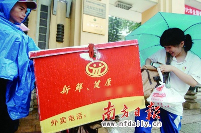 記者以想訂外賣的學(xué)生身份,向西校區(qū)保安員咨詢。該保安員明確告訴記者,他們自上周起接到上面“外賣不得入內(nèi)”的口頭通知,理由是外賣大多由一次性白色塑料飯盒裝盛,這類飯盒污染大、不環(huán)保!叭绻麑W(xué)生叫了這樣的外賣,就只能在校外吃完或者直接到外面餐館就餐!痹摫0舱f。當(dāng)記者問到如果外賣由鋁盒、砂鍋等其他材質(zhì)器具裝盛是否可以入校,該保安考慮了一下表示“可以”,“以前叫外賣的學(xué)生還比較多,現(xiàn)在明顯少了!