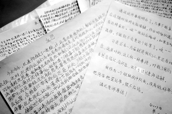 孔老師表示,現(xiàn)在的學生都是溫室里的花朵,稍微批評一下就掉眼淚,必須讓他們經歷些挫折,“我是希望通過這件事情讓他們明白,做任何事情都不要沖動,不能盲目跟風,所以才讓學生們寫反思書”。