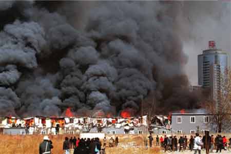 昨天上午10點(diǎn)09分,中央美院南門外的學(xué)生宿舍起火。該宿舍為二層彩鋼板臨建房,過火后,共有100余間學(xué)生宿舍被燒塌。除一人呼吸道被灼傷外,大火未造成更大傷亡。