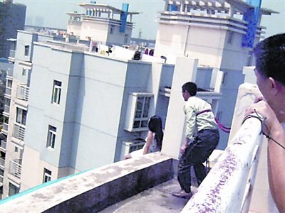 上午9時(shí)26分,青山公安分局工人村派出所接警后,值班民警迅速趕到現(xiàn)場(chǎng)發(fā)現(xiàn),一位女孩站在12樓屋檐上欲跳樓,該所民警一邊組織小區(qū)保安疏散樓下圍觀者,一邊跑上房頂與女孩“談判”,穩(wěn)定其情緒。消防官兵則在樓下鋪開救生氣墊。