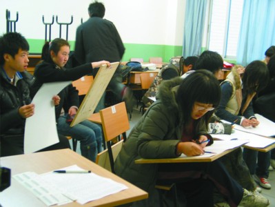圖片說明:學(xué)生們在進(jìn)行美術(shù)專業(yè)考試