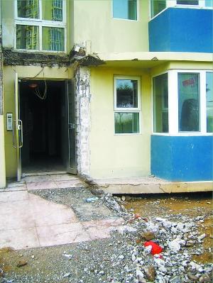 據(jù)媒體報道,繼上海的“樓脆脆”后,京版“樓脆脆”也已現(xiàn)身——清河萊鎮(zhèn)香格里小區(qū)的11號樓門廳下陷,墻上破了兩個大洞,引起小區(qū)業(yè)主的擔憂和恐慌。今天上午記者在萊鎮(zhèn)小區(qū)的現(xiàn)場看到,塌陷的門廳已經(jīng)被拆卸。
