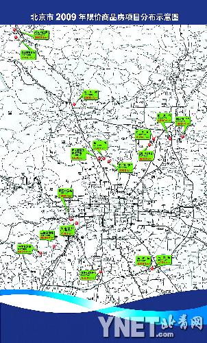 北京市2009年限價(jià)商品房項(xiàng)目分布示意圖(來(lái)源:北京青年報(bào))