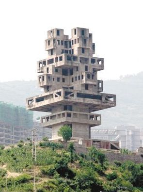 在電影《三峽好人》中,影片結(jié)尾部分有一個(gè)異化的火箭升空,火箭主體就是奉節(jié)縣“華字塔”,這個(gè)塔由于成為爛尾工程,最近被炸毀拆掉。