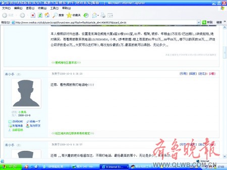 10月9日上午,在威海一家便民網(wǎng)站“社區(qū)供求”欄中,新注冊(cè)用戶“朱小冬”發(fā)出了一個(gè)標(biāo)題極度夸張的帖子,宣稱“1塊錢起拍,賣自己樓房,81平方米,絕對(duì)真實(shí)”。