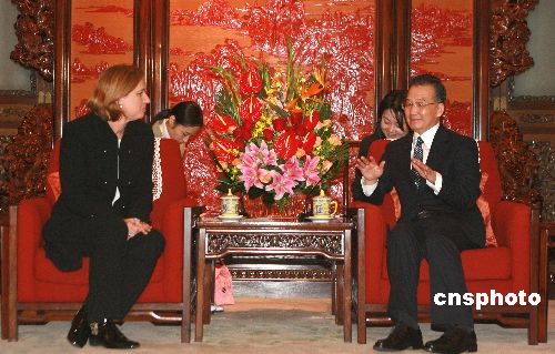 十月三十日,中國國務(wù)院總理溫家寶在北京中南海紫光閣會見以色列第一副總理兼外交部長齊皮·利夫尼。中新社發(fā) 廖文靜 攝