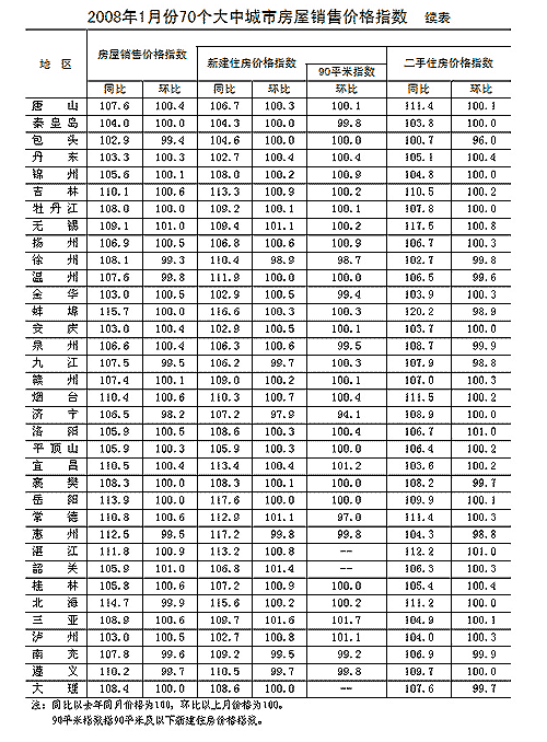 90平方米及以下新建住房銷售價(jià)格環(huán)比漲幅較大的主要城市包括:太原2.2%、三亞1.7%、南寧1.5%、宜昌、青島、合肥、石家莊均上漲1.2%等;環(huán)比價(jià)格下降的主要城市包括:濟(jì)寧5.9%、重慶和常德均下降3.0%、蘭州1.4%、徐州1.3%和海口1.2%等。