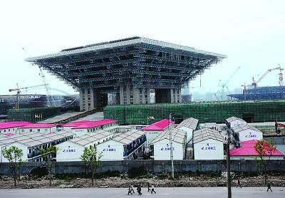 4月12日,上海世博會(huì)中國(guó)館“東方之冠”基本成型。圖為中國(guó)館“東方之冠”外觀。 張向陽(yáng)攝
