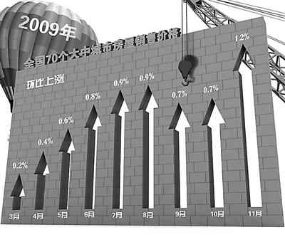 國家統(tǒng)計(jì)局對(duì)2009年房地產(chǎn)市場(chǎng)的監(jiān)測(cè)報(bào)告表明,從今年5月份開始,樓市在“反彈”、“回暖”中驟然升溫,隨后房價(jià)一路狂飆。11月份,全國70個(gè)大中城市房屋銷售價(jià)格同比上漲5.7%,漲幅比10月份擴(kuò)大1.8個(gè)百分點(diǎn)。新建住宅銷售價(jià)格同比上漲6.2%,漲幅比10月份擴(kuò)大2.2個(gè)百分點(diǎn)。在一線城市,相比年初,很多樓盤的成交價(jià)格均已翻了一番。