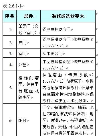 2.6.1公共租賃住房室內(nèi)按照環(huán)保、耐用、經(jīng)濟的原則,裝修一次到位。裝修標準不低于表2.6.1-1標準。