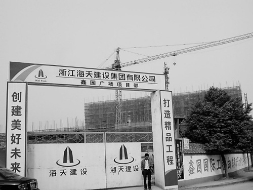 11月14日,記者站在這幢還沒蓋到一半的大樓前。這個(gè)坐落在義烏與東陽交界處的樓盤,叫“鑫源國際”。