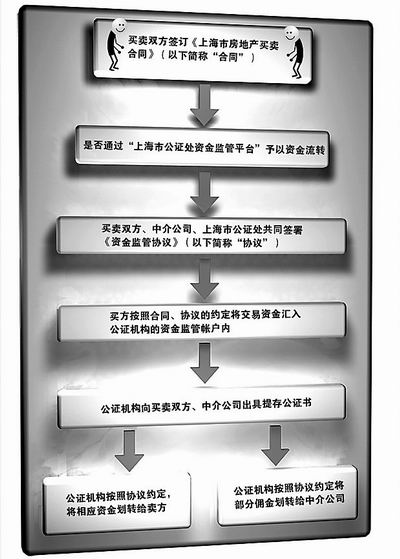 與上海市公證處從事的其他公證業(yè)務(wù)不同的是,二手房資金監(jiān)管過(guò)程中,公證處并非獨(dú)立第三方,而介入其中成為主體之一。據(jù)介紹,在資金打入公證處監(jiān)管賬戶(hù)之前,二手房上下家、中介公司和上海市公證處將簽定一份《資金監(jiān)管協(xié)議》。上海市公證處與上下家共擔(dān)整個(gè)交易過(guò)程中的資金風(fēng)險(xiǎn)。