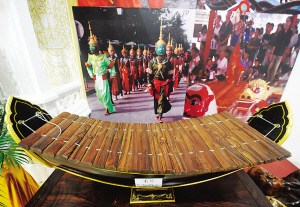 在香通寺模型周圍,還有形式多樣的展品,如當(dāng)?shù)靥厣你~鑼、木琴、名貴紅木手工藝品、現(xiàn)場制作的稻香咖啡等。