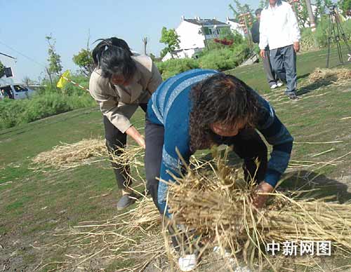 連日來,上海市及各區(qū)縣紛紛舉行各種形式的慶祝活動,迎接二0一0年上海世博會開幕倒計時一周年。在今天下午的廊下鎮(zhèn)記者看到,一個多由農(nóng)民參加,頗有江南鄉(xiāng)村特色的體育節(jié)拉開了帷幕。據(jù)主辦方介紹,這個名為“健康迎世博”的廊下鎮(zhèn)第二屆鄉(xiāng)村體育節(jié),旨在表達當?shù)剞r(nóng)民希望通過體育運動來迎接世博會開幕的心情,同時也為“五一”假期里來此郊游的滬上市民提供一個參與鄉(xiāng)村游戲的舞臺。將持續(xù)至5月3日的本屆鄉(xiāng)村體育節(jié),設立的十個體育游戲項目,多是從日常的農(nóng)活中提煉而來的,包括捆稻草、插秧、搓跳繩、搶在暴風雨前、拋接米袋和運磚造房子等,充滿了鄉(xiāng)村野趣。