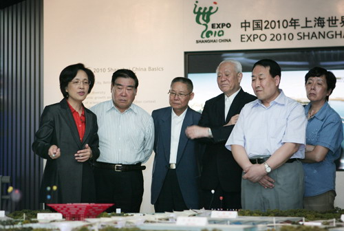 在鐘燕群的陪同下,老領(lǐng)導們參觀了世博會規(guī)劃展示廳,并登上世博大廈頂樓俯瞰建設(shè)中的世博園區(qū)。鐘燕群表示,上海世博會的各項籌備工作都在緊張有序的進行之中。世博園區(qū)建設(shè)、配套設(shè)施建設(shè)、參展方服務、運營、宣傳等工作齊頭并進,上海世博會組織者力爭“想細、想全、想一萬、想到萬一,抓深、抓細、抓落實、一抓到底”。鐘燕群還就老領(lǐng)導們關(guān)心的世博門票、參展進展、世博交通、展館接待能力等情況進行了詳細介紹。